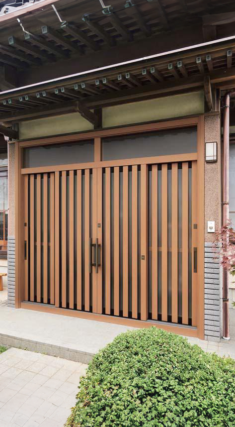 上記の袖付き2枚連動引戸であれば、今ある間口より広くなり、車いすやベビーカー、自転車なども楽に通れます。