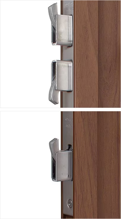 引戸を閉めるとすぐに鍵がかかるラッチ構造(オプション)は閉め忘れ防止に役立ちます。